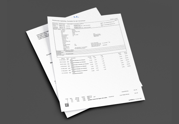 tarif590.ch haben Sie das optimale Werkzeug für die Rechnungsstellung und das Drucken der Rückforderungsbelege für die Krankenkasse.